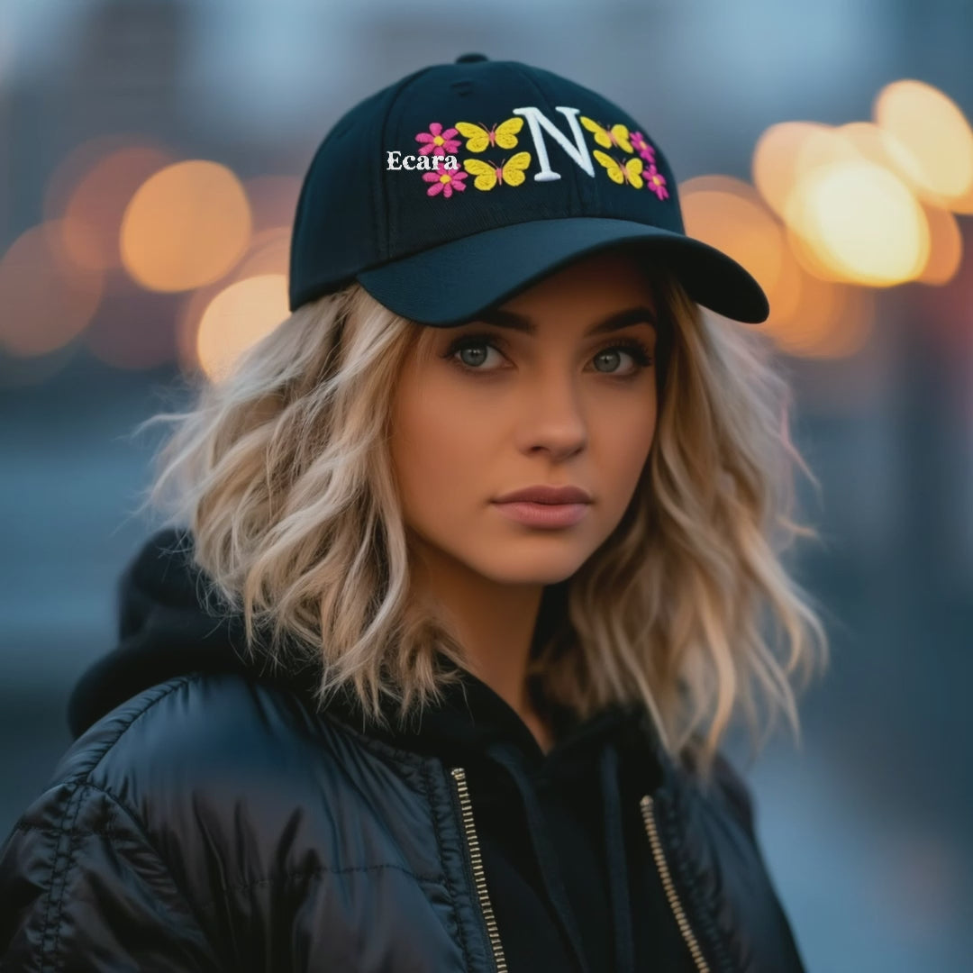 Embroidered Letter N Denim Hat